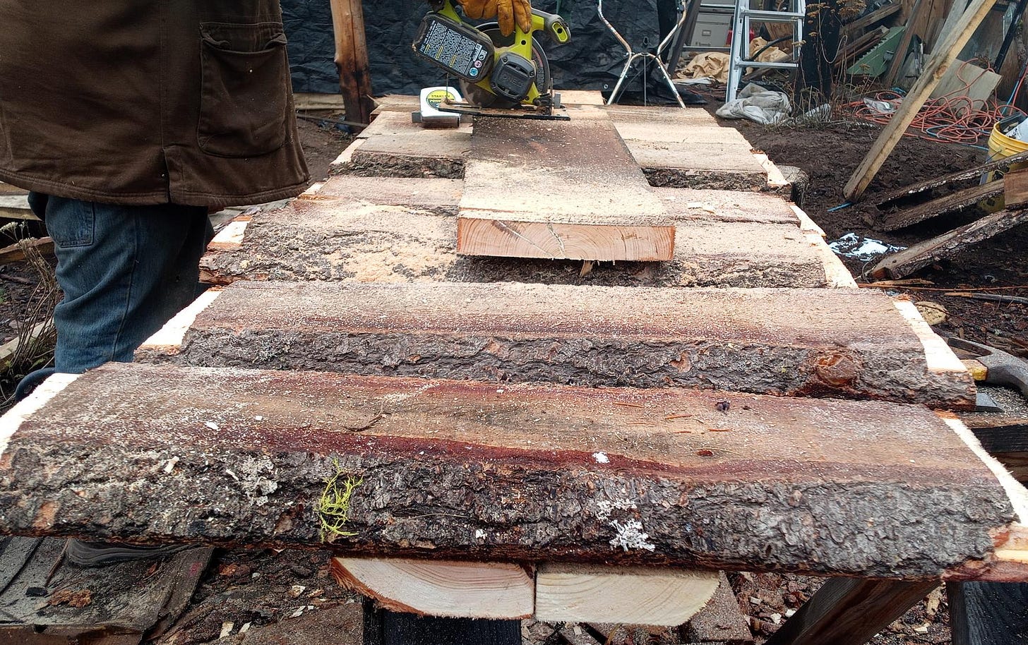 I have a lot of rough-cut lumber from earlier this year, and if I don’t use it up soon it will wind up buried under the snow. So, in the spirit of slaughtering songbirds with pebbles, I figured I could make my problem into something pretty cool.