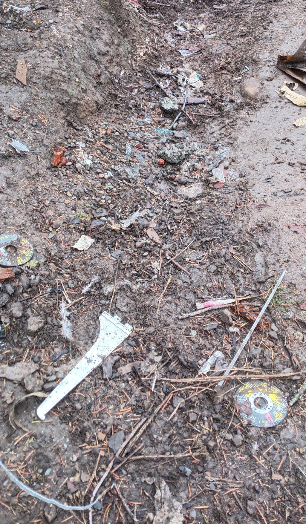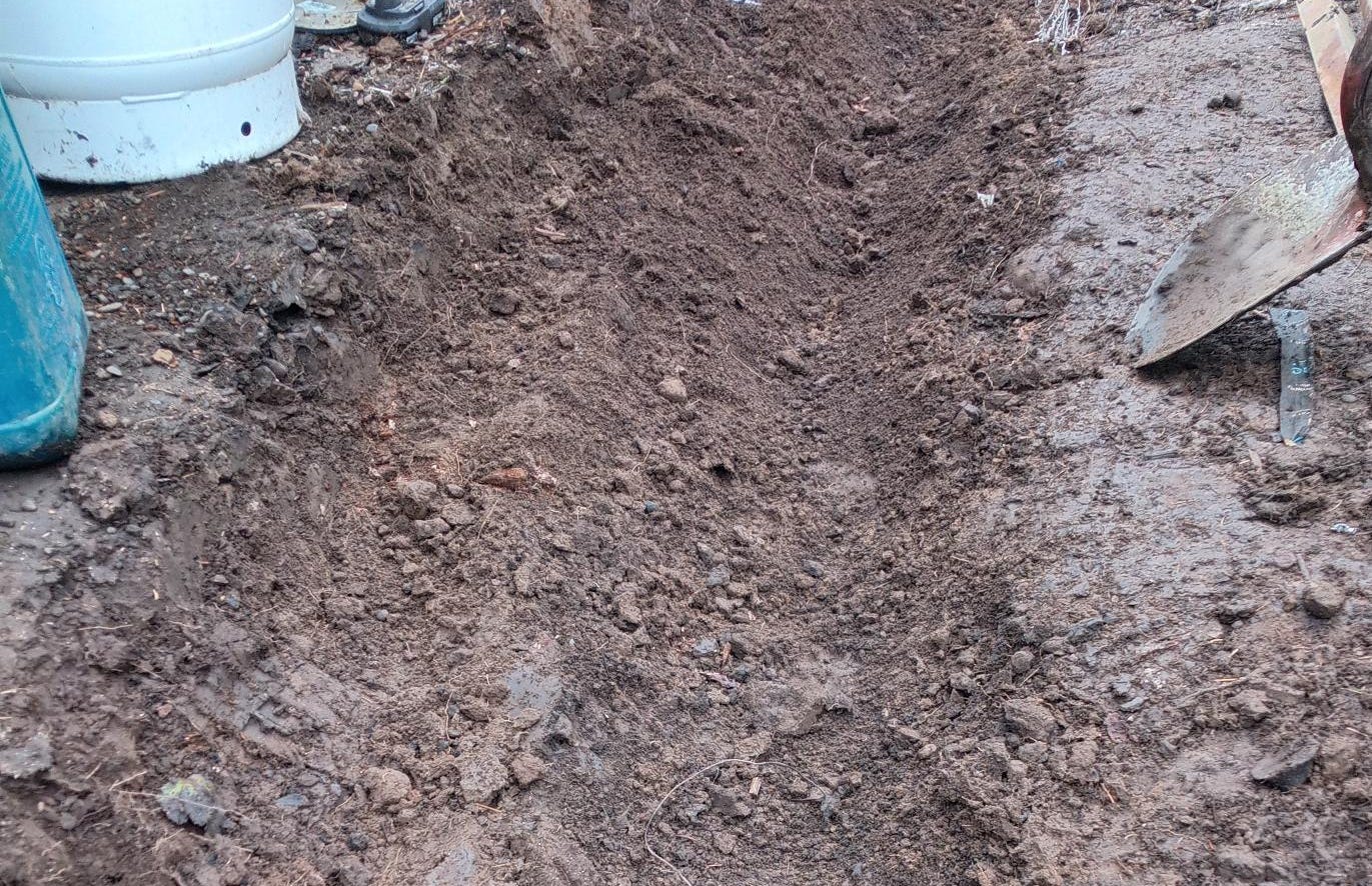 What was once a beautiful, deep ditch for rain and snow run-off has silted up and gotten clogged with construction detritus, crap that the dogs have stolen from my shop and dropped in there (like dead grinder wheels), and all kinds of other crap that happens when you’re building a lot.