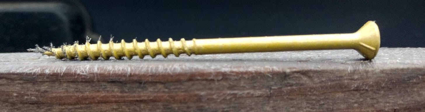 Then, once everything was tacked in place, I went back and ran a second screw through every thread for rigidity.
