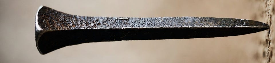I was working with wet wood on something that was going to live outside in the wet, and I didn’t want to take the time to forge new nails, so I was gonna have to cheat.